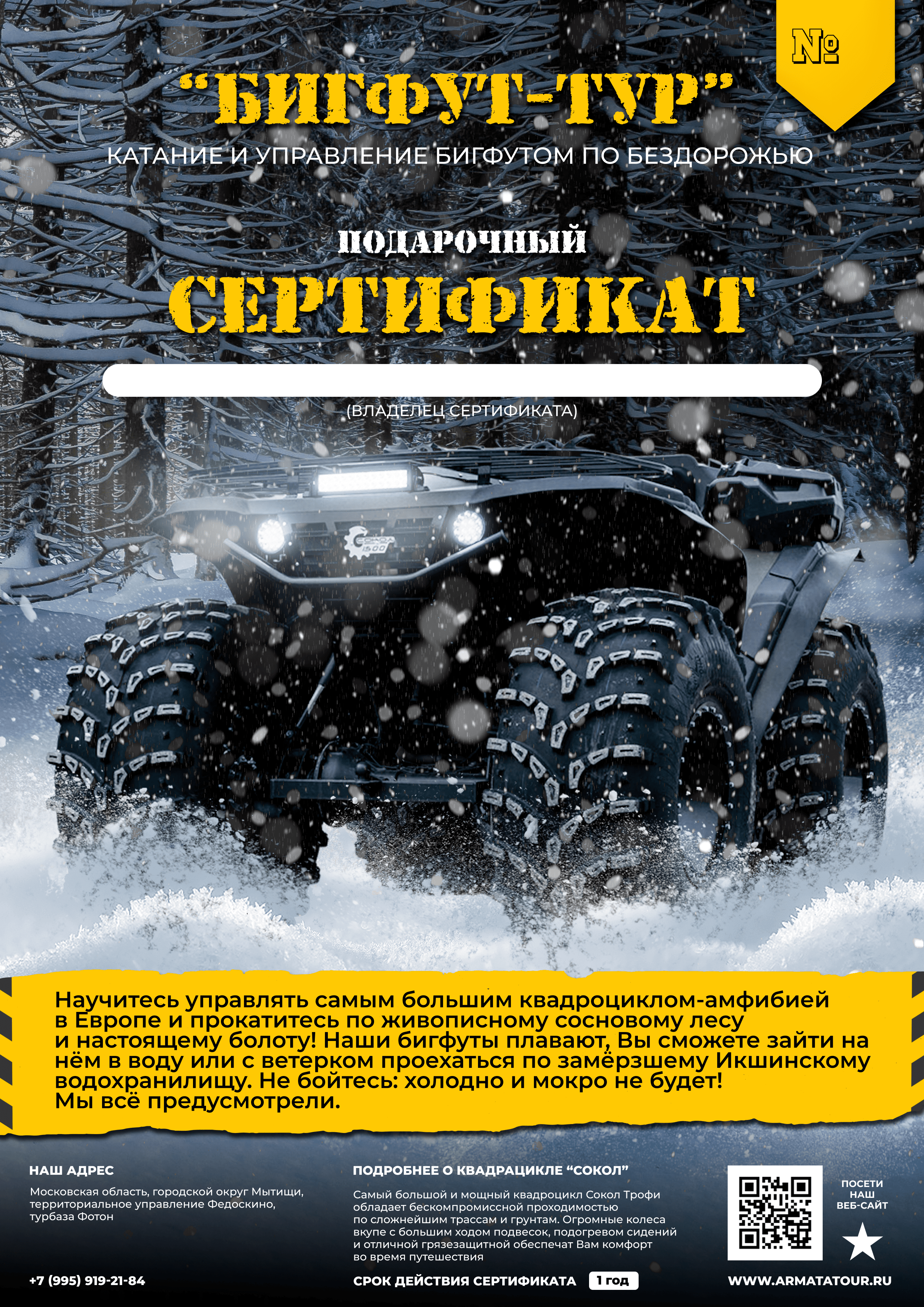 • 驾驶四轮摩托车(40-50 分钟),沿预先设计的路线行驶,其中包括:穿越田野、越过林带、越过深沟、越过岔道、峡谷和下坡、通过游泳克服水上障碍、穿越沼泽地带。