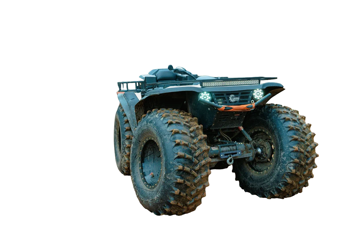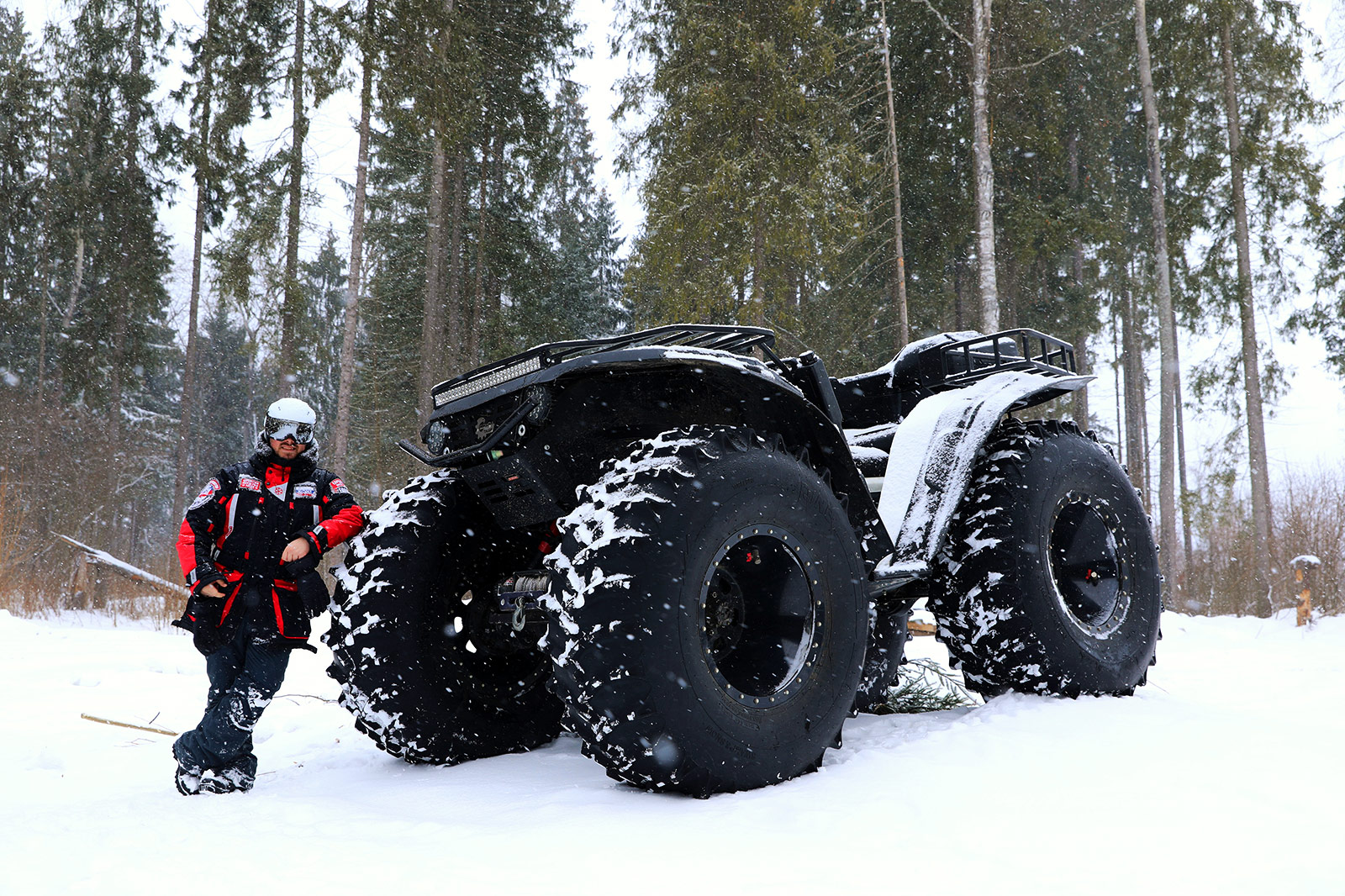 四轮摩托车的时速可达100 公里,可以轻松穿过沼泽,越过倒下的树干,还可以游泳。在冬季,还可以选择在深水中跌落冰面!